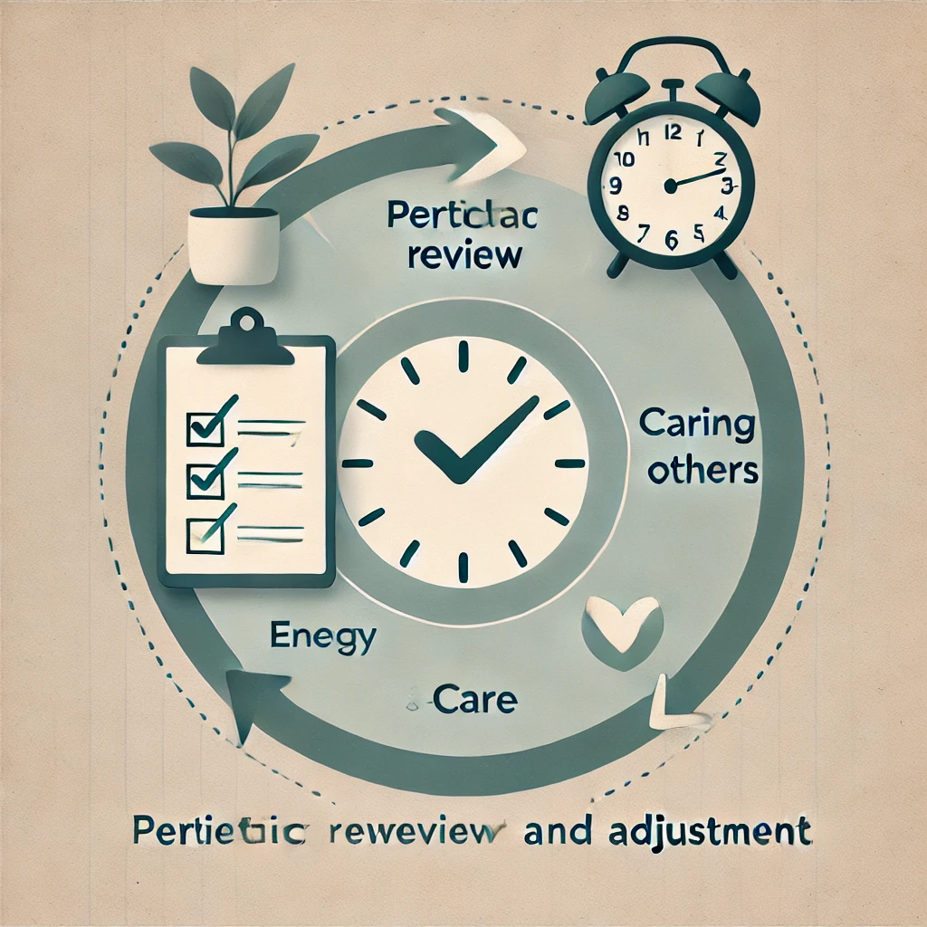 6. Revisión Periódica y Ajustes Revisar los “gastos de energía y tiempo”: en las finanzas, revisamos nuestro presupuesto y gastos para asegurarnos de que estamos alineados con nuestras metas. De igual manera, es útil revisar regularmente cuánto tiempo y energía estamos dedicando al autocuidado y al cuidado de los demás, y si esa distribución es saludable o necesita ajustes.